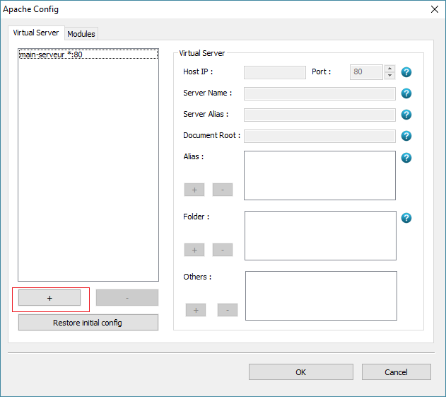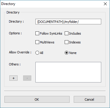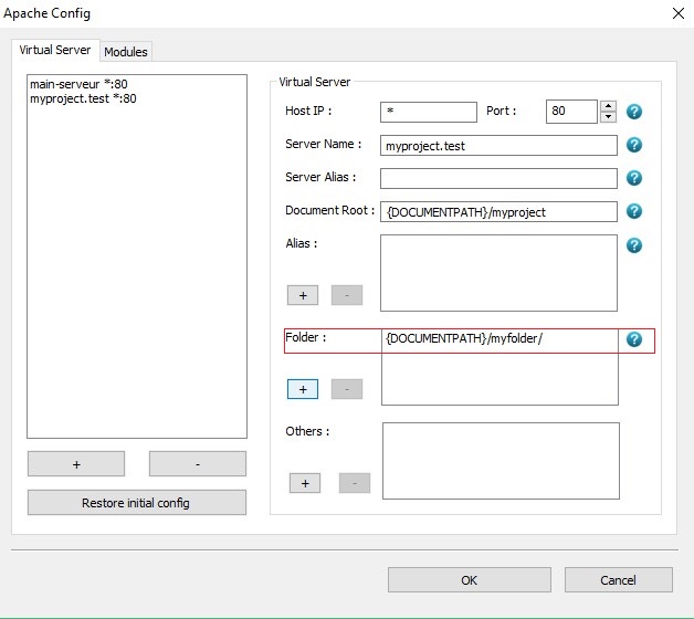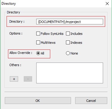 3. Click OK to confirm changes (the Apache config file will be automatically updated)