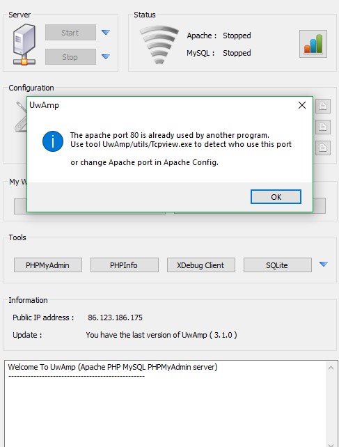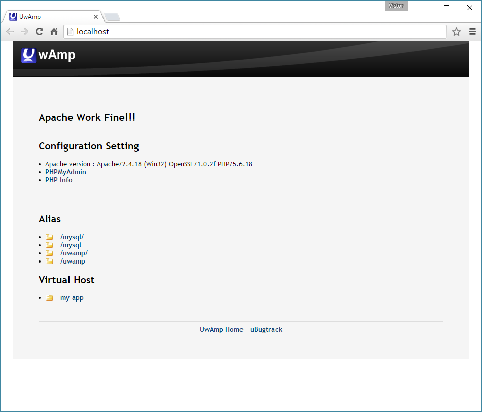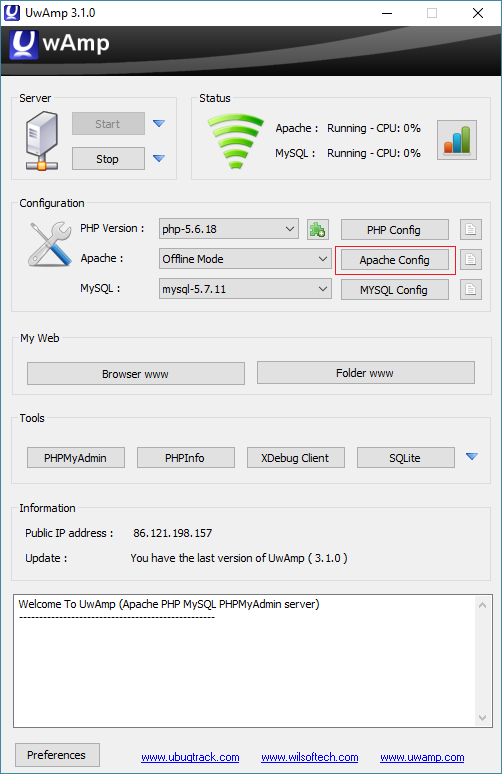 We’ll be using UwAmp bundle that contains a development stack composed of Apache Web Server, PHP 7.* Language Interpreter, MySQL Database Server and phpMyAdmin Database Interface.