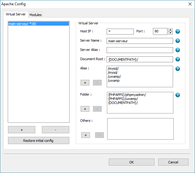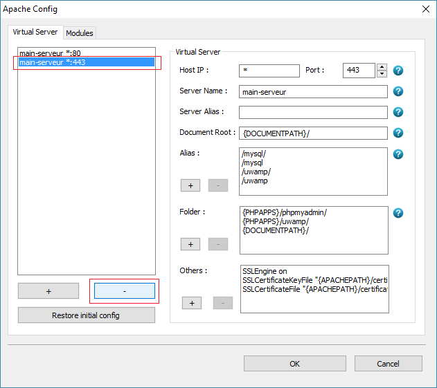 1. Manually edit the Apache config file/Add a vhost through the UwAmp control panel