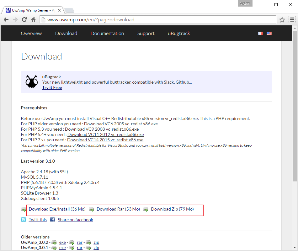 Go to the Download section of the website to download the latest UwAmp version. You can choose to either: