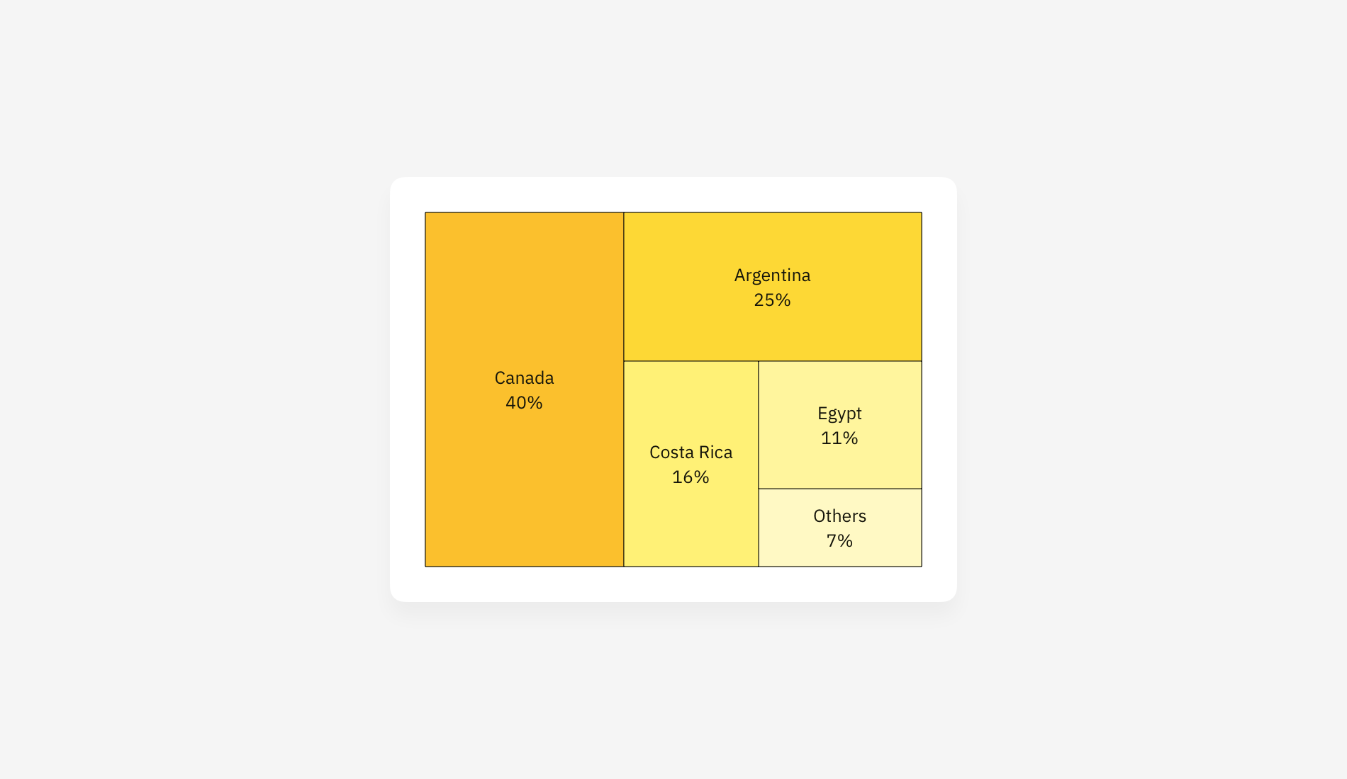 For pie charts this would mean ordering slices according to their size for easier comparison. Additionally, you can use a treemap, where rectangles of various sizes represent the percentage. The bigger the surface, the bigger the percentage. Although people are usually better at comparing lengths, areas are also a good way to compare data at a glance if you want to spice up your design with something more than bar charts.
