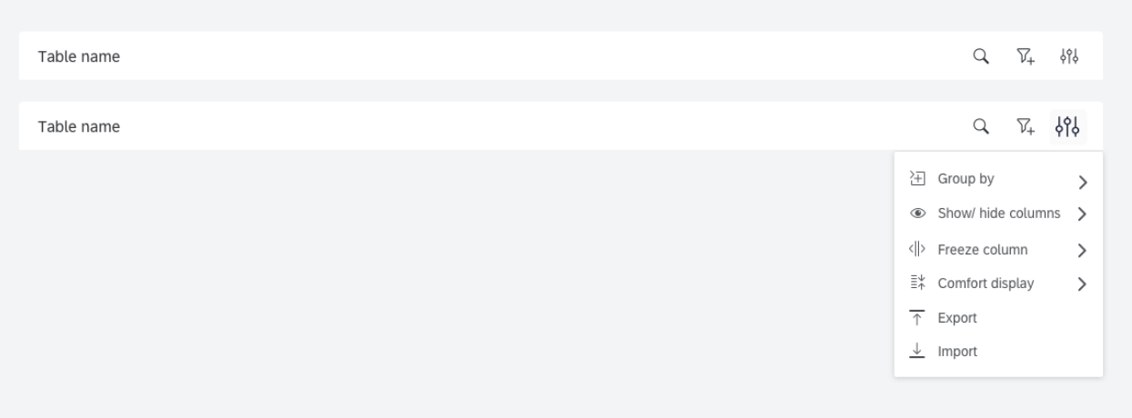 A good table design should allow users to customize how they view data as much as possible. Especially when there's a lot of it. Some of the most useful features include: