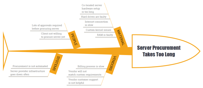 Step 2. Create an Ishikawa diagram. This acts as a visual representation of the hypothesis that could explain the problem statement.
