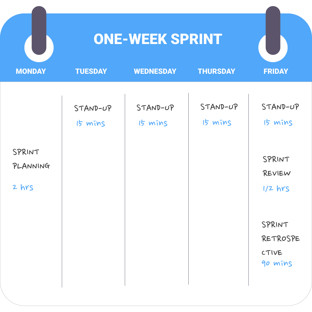 A sprint is a set time frame, anywhere between one and four weeks — we decide the length of a sprint based on the complexity of the project. At the end of a sprint we should have a deliverable to test and improve upon in future sprints.