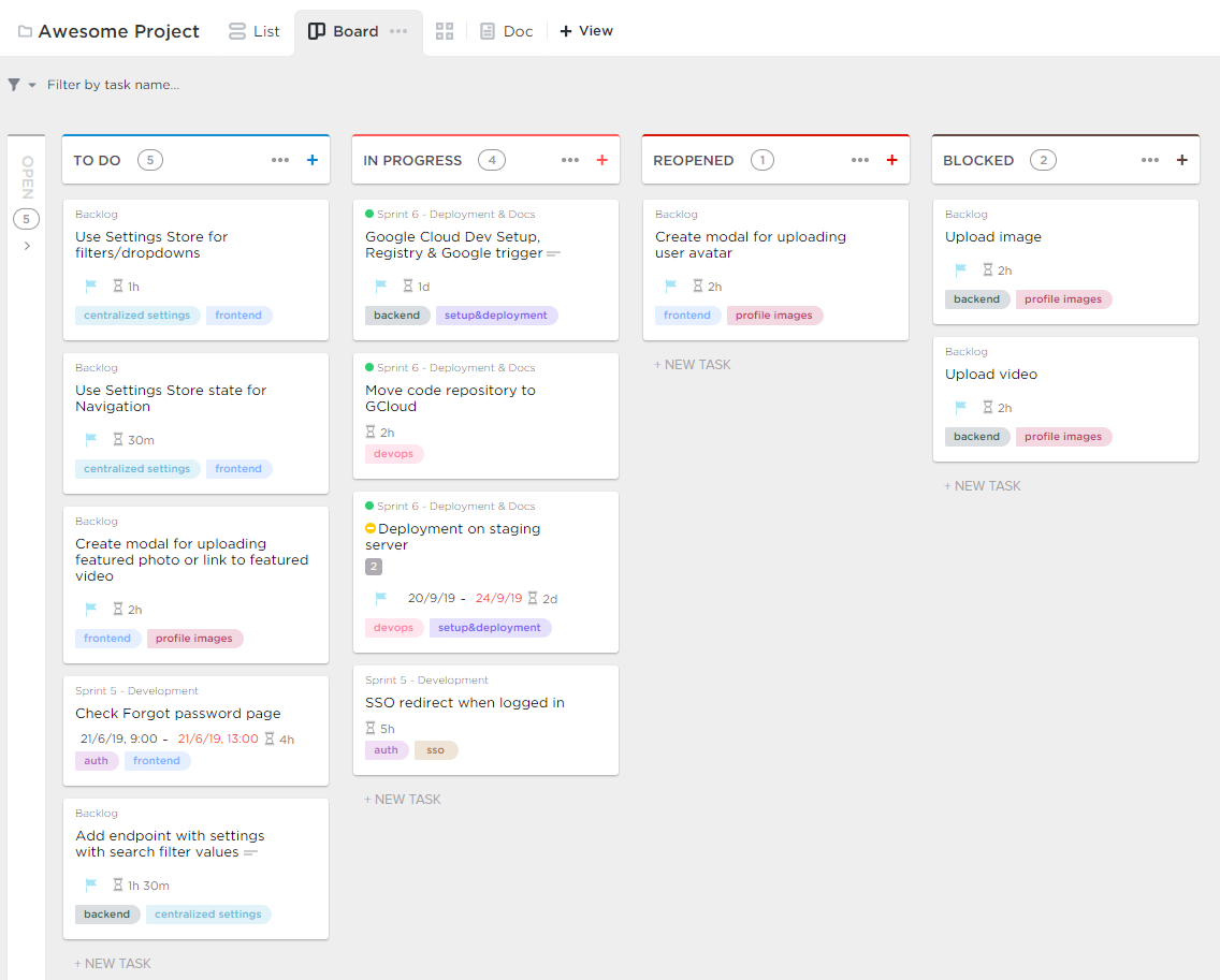 We`ve worked with a few throughout the years, from Asana and Jira to, most recently ClickUp. A