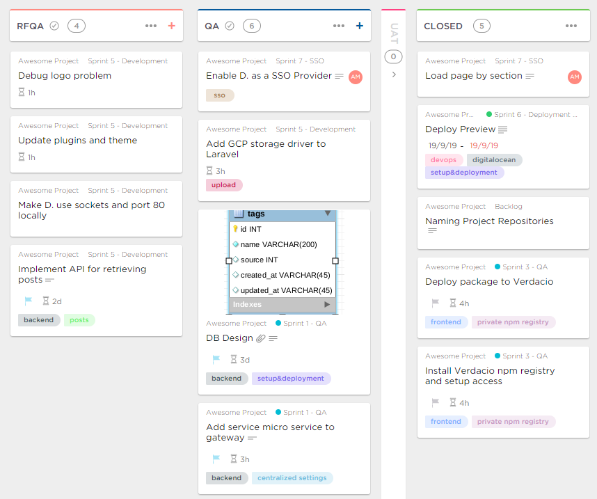cards move through the columns to indicate the progress made on each task. During daily stand-up